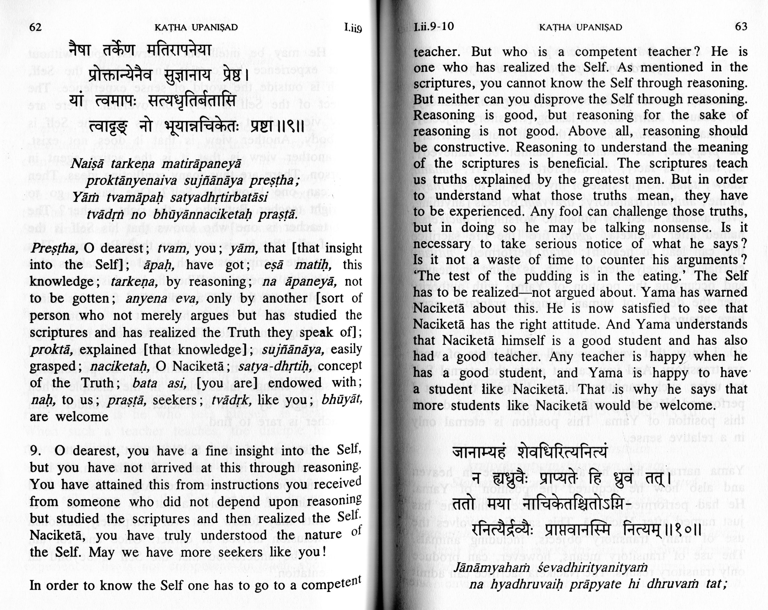 Devanagari text, transliteration, word-for-word meanings, and English translation, with notes based on the commentary of Sankara.